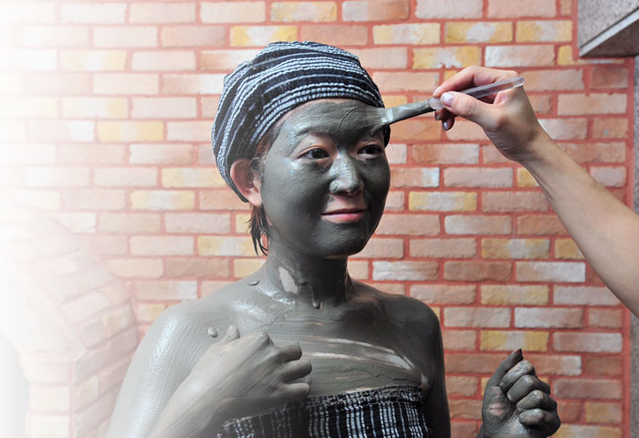 韓国伝統のサウナ『汗蒸幕』は100度前後の石のドームで成り立っています。幕内はかなりの高温ですが気持ちよいほどの適度な汗と体内に蓄積した毒素が排出され、韓方(よもぎなど数種類の薬草をブレンドしたもの)の香りがシナジー効果を高め疲労感が解消されます。